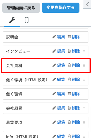 管理画面 > [デザイン] > [トップページメインカラム] > [会社資料] にて設定を行います。