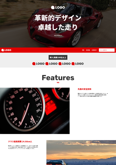情熱や力強さを感じさせる赤と黒を基調とした、ダイナミックなデザインのテンプレートです。